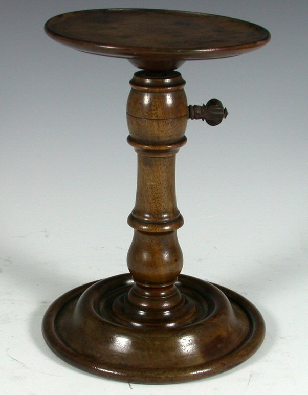 with moulded base (covered with old green baize), with its original threaded turn button height adjuster
