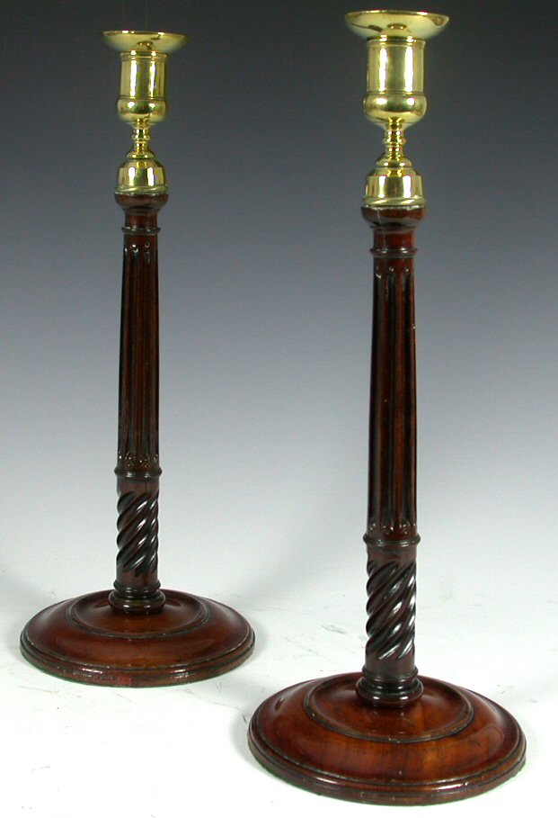 with spiral and fluted stems and brass sockets, circa 1760