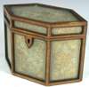 A late 18th century mahogany framed paper scroll tea caddy,