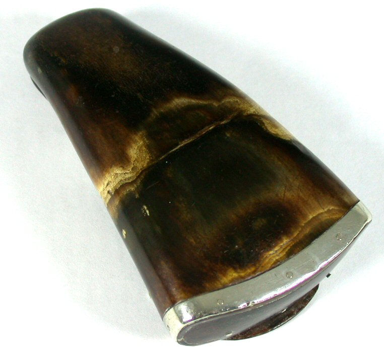 An early 18th century silver mounted cow horn snuffbox,