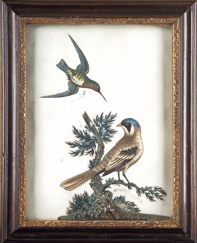 The Painted Pheasant from China, 1764 set, 24cm x 18cm; and The Read-Throated Humming Bird and the Least Butcher-Bird, bears label with title and further label "H. Map & ..."