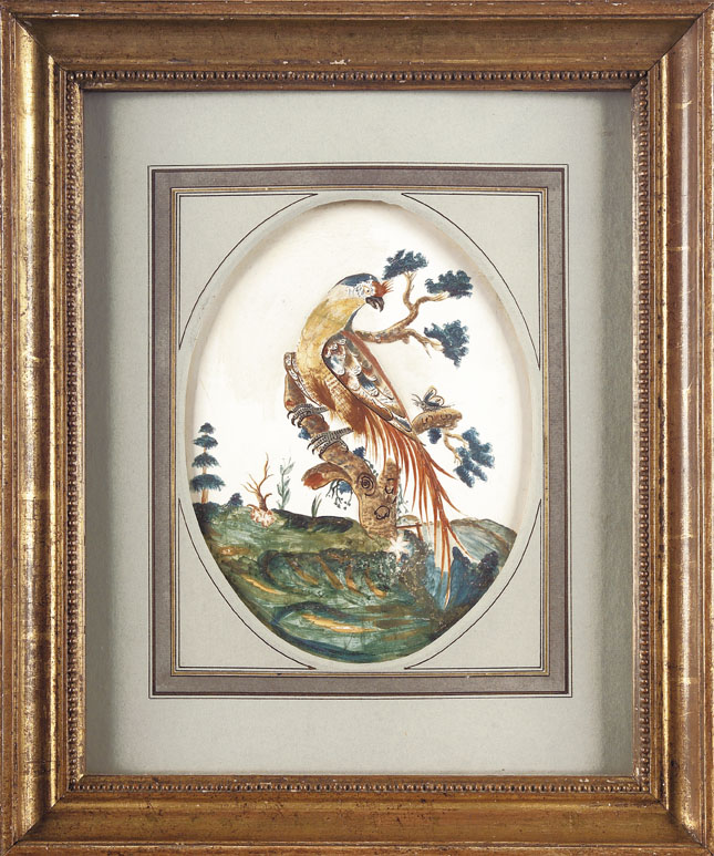 These works compare with Hayes' birds studies of 1770s, when he used the oval format. Examples may be found in the collection of Lord Bradford, Weston Park, Salop