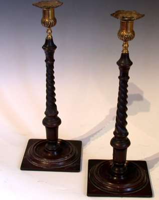 A pair of George III mahogany candlesticks,
