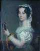 LADY DRESSED IN WHITE HOLDING A GUITAR (NOTE - NOT VIOLIN)
