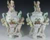 A pair of Sitzendorf twin-handled urn shaped vases and covers,