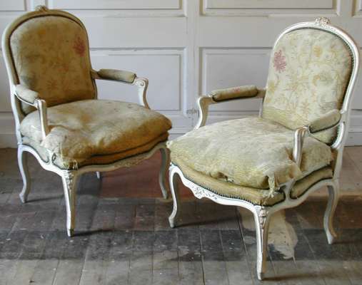 upholstered with floral needlework, the carved frames with moulded arms and cabriole legs, separate squabs