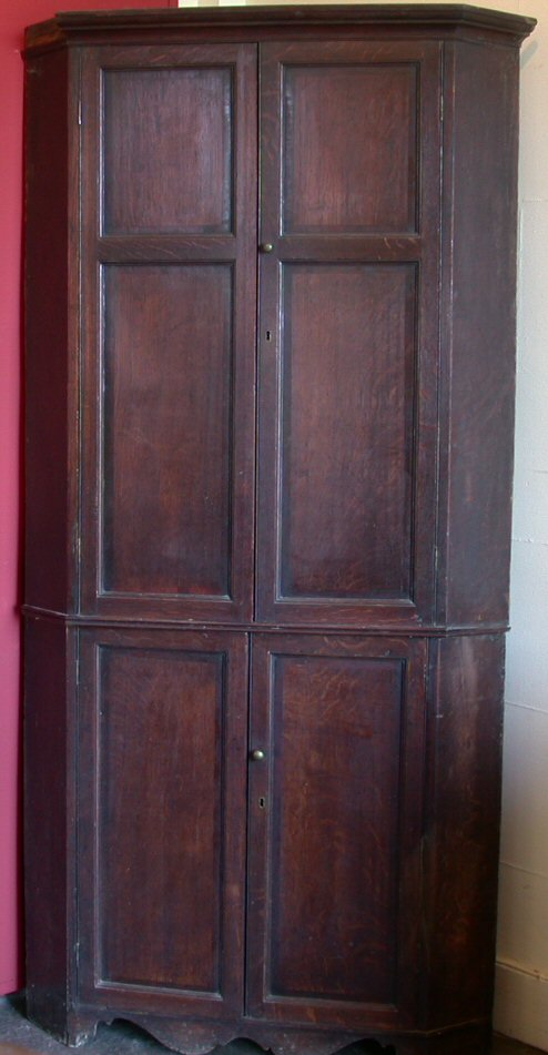 A Georgian oak two-tier corner cupboard,
