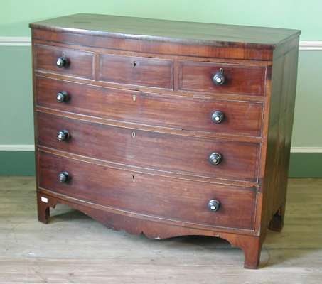 A Regency mahogany and ebony strung bowfront chest,