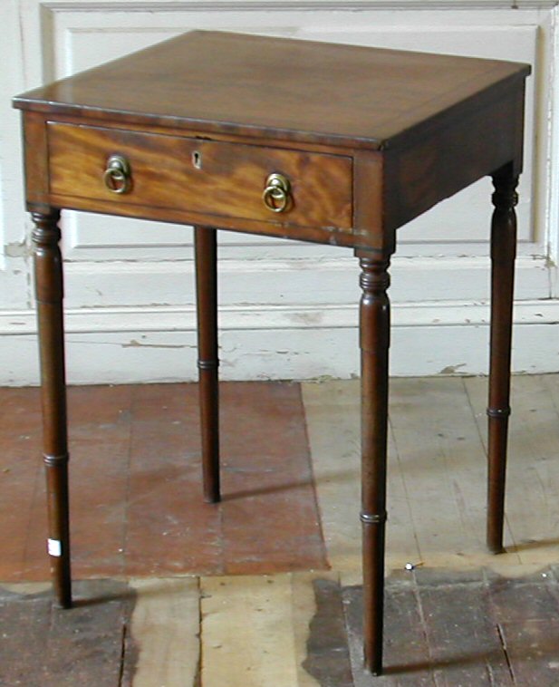 with ebony stringing the square top above a frieze drawer on ring turned tapering legs