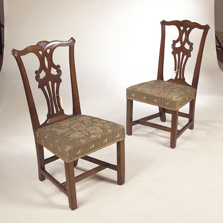 A pair of George III mahogany side chairs,