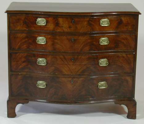 A George III mahogany serpentine chest of drawers,