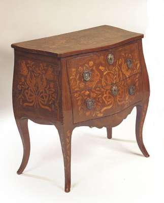 A 19th century Dutch mahogany and marquetry inlaid bombe commode,