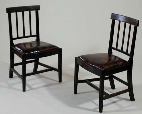 with broad top rails, raised over drop-in seats and raised above reeded square tapering legs
