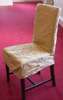 each with rectangular upholstered back and seat, cream cotton upholstery, square section tapering legs joined by H-stretcher, loose yellow damask cover (8)