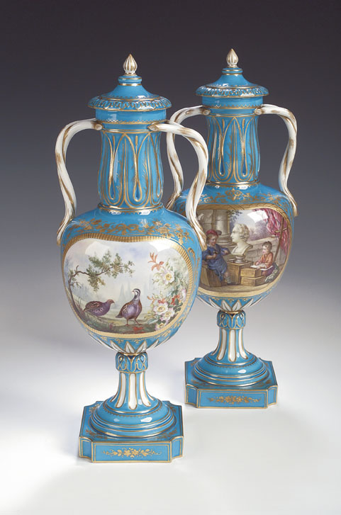 A pair of late 19th century Sevres twin-handled baluster vases and covers,