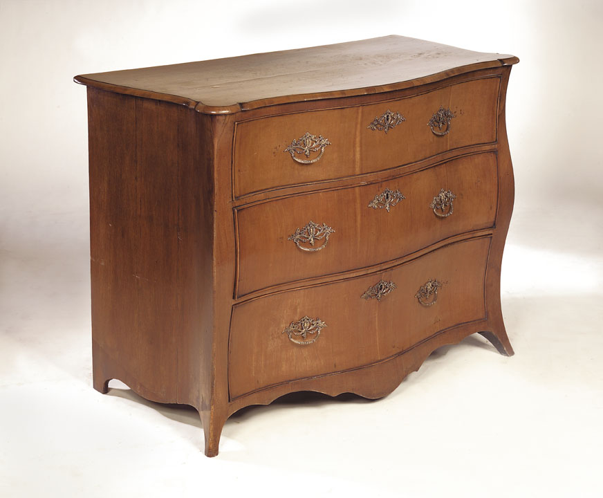 A late 18th century walnut serpentine chest of drawers,