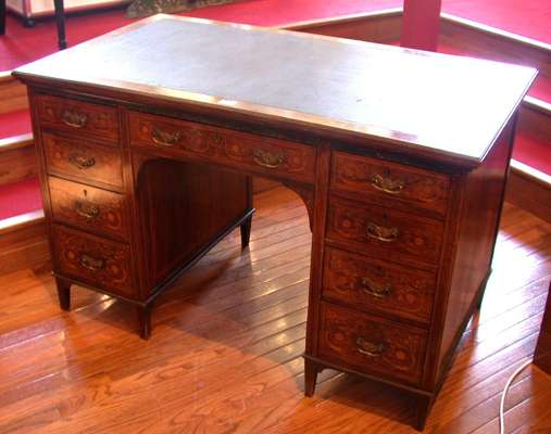 An Edwardian rosewood and boxwood strung pedestal desk,