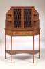 with rosewood crossbanding and ebony stringing, the upper section with pair of astragal glazed doors enclosing shelves flanked by open quadrant shelves, raised on deeper base with grotesque marquetry, the frieze drawer flanked by similar quadrant panels, on square section tapered legs joined by shaped undershelf