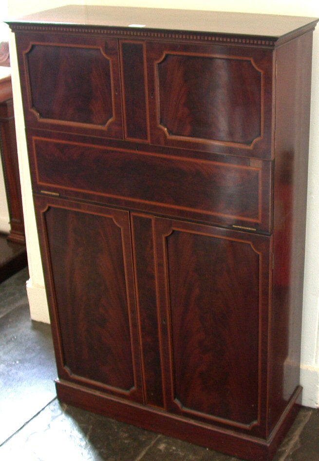 A late 19th century mahogany and satinwood banded cutlery cabinet,