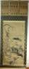 depicting three ducks in shades of grey, in naturalistic setting,with gilt silk brocade ends and pole turned bone end