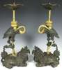 A pair of Chinese bronzed and gilded pricket candlesticks, 20th century,