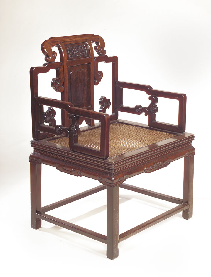A Chinese hardwood ceremonial open armchair,