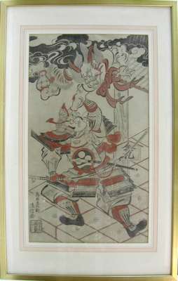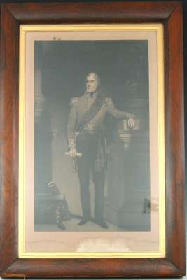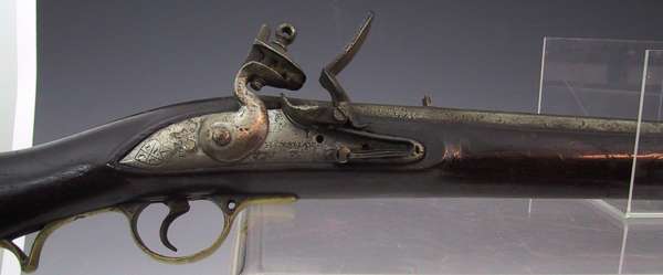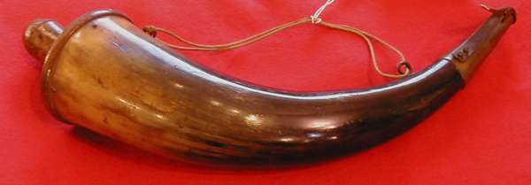 An early 19th century military gunners cowhorn powder flask stamped with WD arrow,