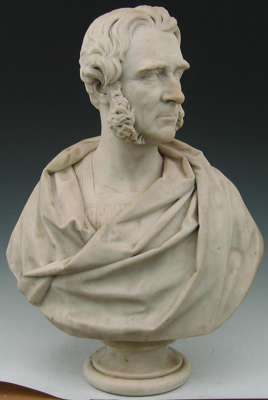 William Brodie RSA A head and shoulders marble bust of a man in classical dress,