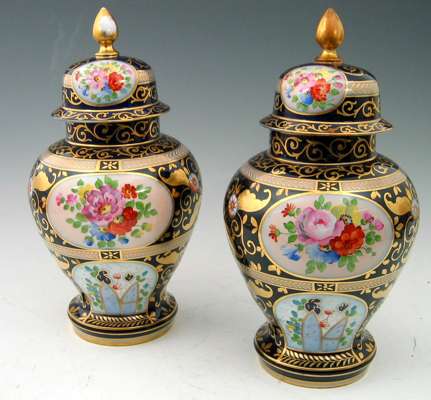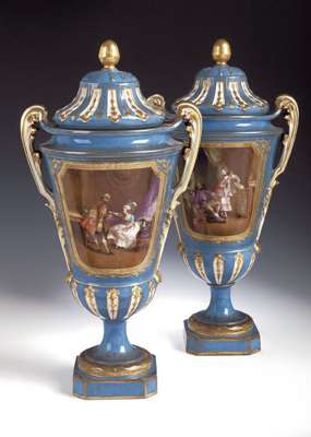 A pair of late 19th century Sevres style twin handled vases and covers,