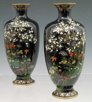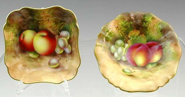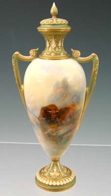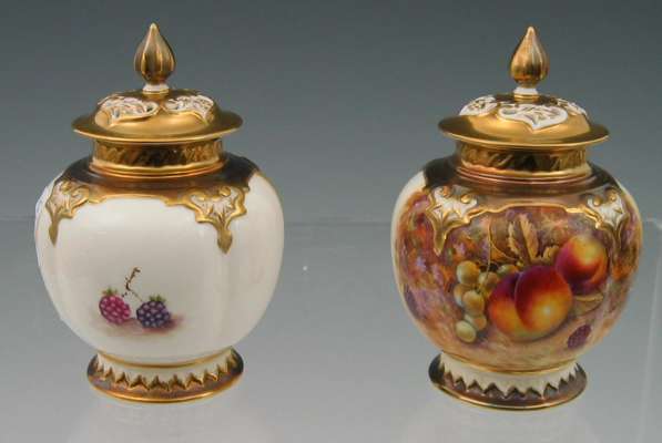 A pair of modern Royal Worcester small squat baluster vases and covers,