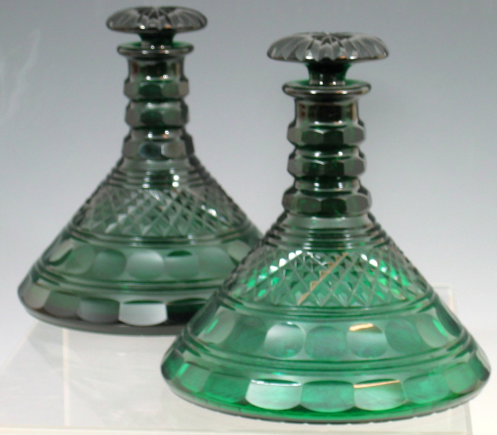 with chrysanthemum cut mushroom stopper, over faceted triple neck, spreading base with strawberry cut frieze, the base with sunburst cut (2)