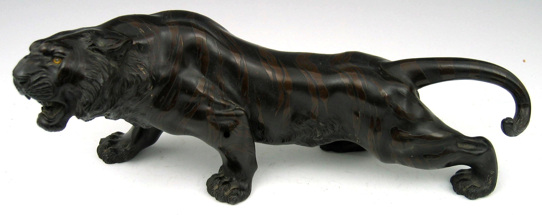 A late 19th century Chinese hollow cast model of a growling tiger,