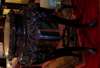 of massive size and circular form, profusely carved with flowers and leaves, five cabriole legs with scroll toes joined by pierced stretcher
