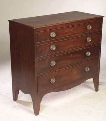 the rectangular top over four long graduated drawers, shaped apron and feet