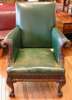 the square leather upholstered back and lower outscrolled arms with carved eagle's head terminals, gadrooned seat rail with Vitruvian scroll frieze, cabochon carved cabriole front legs with ball and claw feet