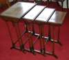 each graduated top of rectangular outline with satinwood banding and applied beading raised on turned and tapering supports with vertical boxwood inlay, on trestle ends linked by a stretcher (4)