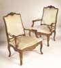 A pair of French 19th century beech fauteuils and a settee en suite,