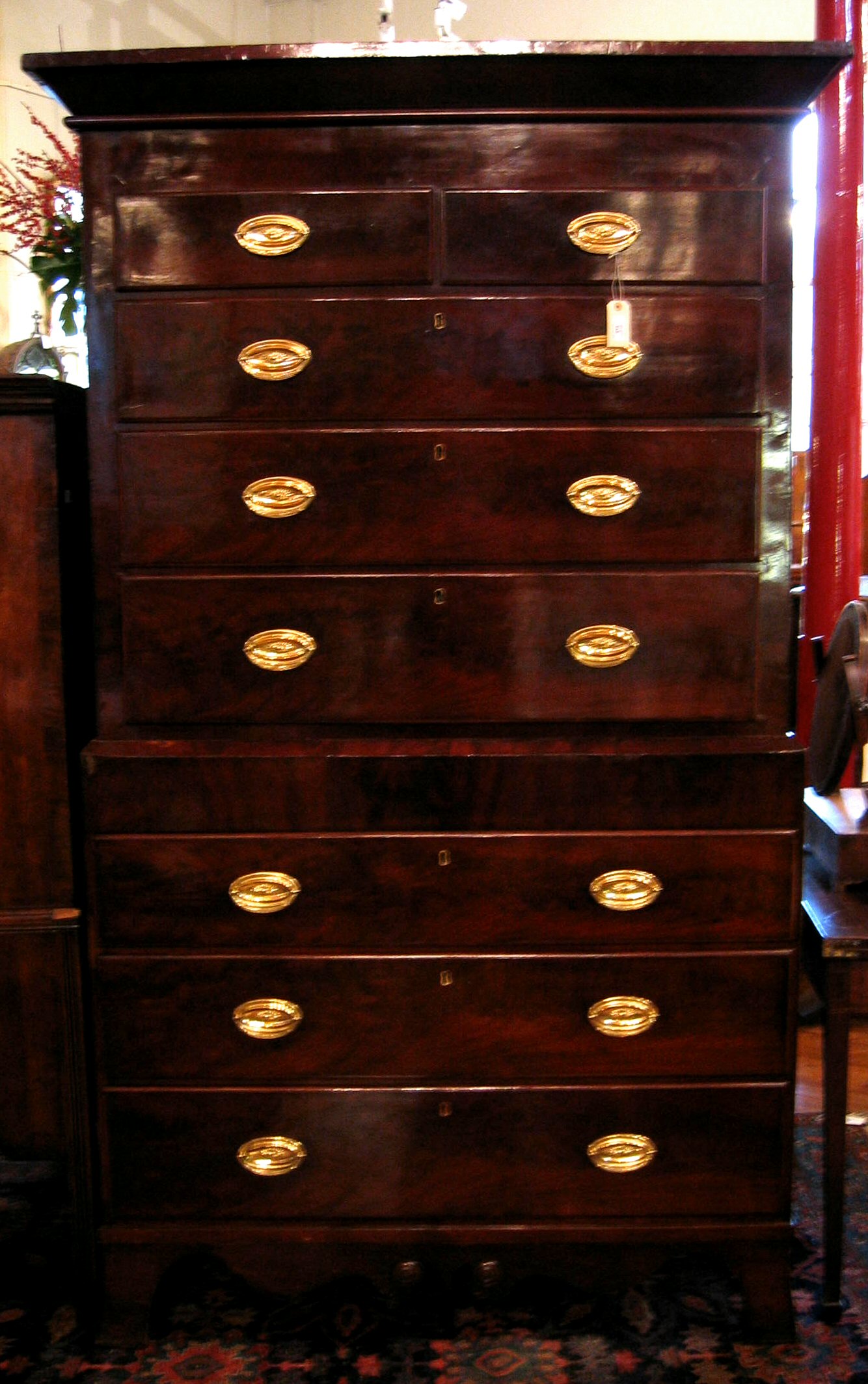 A Dutch 19th century mahogany chest on chest,