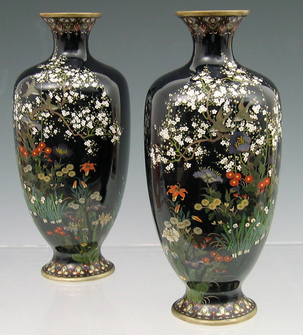 A pair of Japanese cloisonné baluster vases, Meiji period,