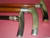 the mounts engraved with foliage and inscribed 'D.M.A.', the band with blank cartouche, the shaft with giltmetal ferrule with steel tip; and another two similar, one with silver mounts (3)