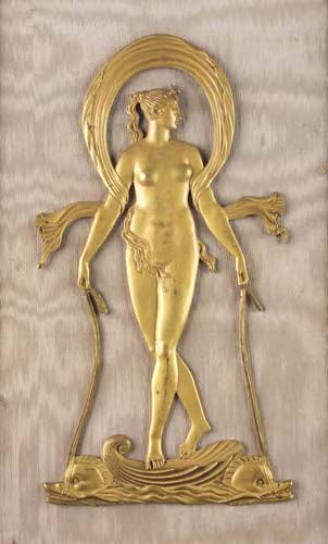 probably for Jacob Freres, Paris, depicting Venus, standing on a shell pulled by mythic sea beasts, the whole mounted on a silk panel and framed