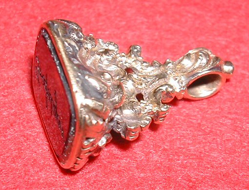 with foil backed rounded rectangular intaglio set fob inscribed TRAFALGAR