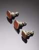 one with octagonal cornelian intaglio bearing a Viscount's coronet above the monogram SB, cast mount, 26mm high; one with rectangular moss agate intaglio bearing an Earl's coronet above a monogram, fluted mount, 26mm high; and one with drounded rectangular cornelian intaglio bearing a Marquess's coronet above griffin supporter and monogram SB, cast mount, 27mm high, possibly relating to the Egerton family, Dukes of Bridgwater family (3)