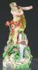 modelled standing with a dolphin at his feet, on a shell-encrusted and gilt decorated scroll base, incised number 299
