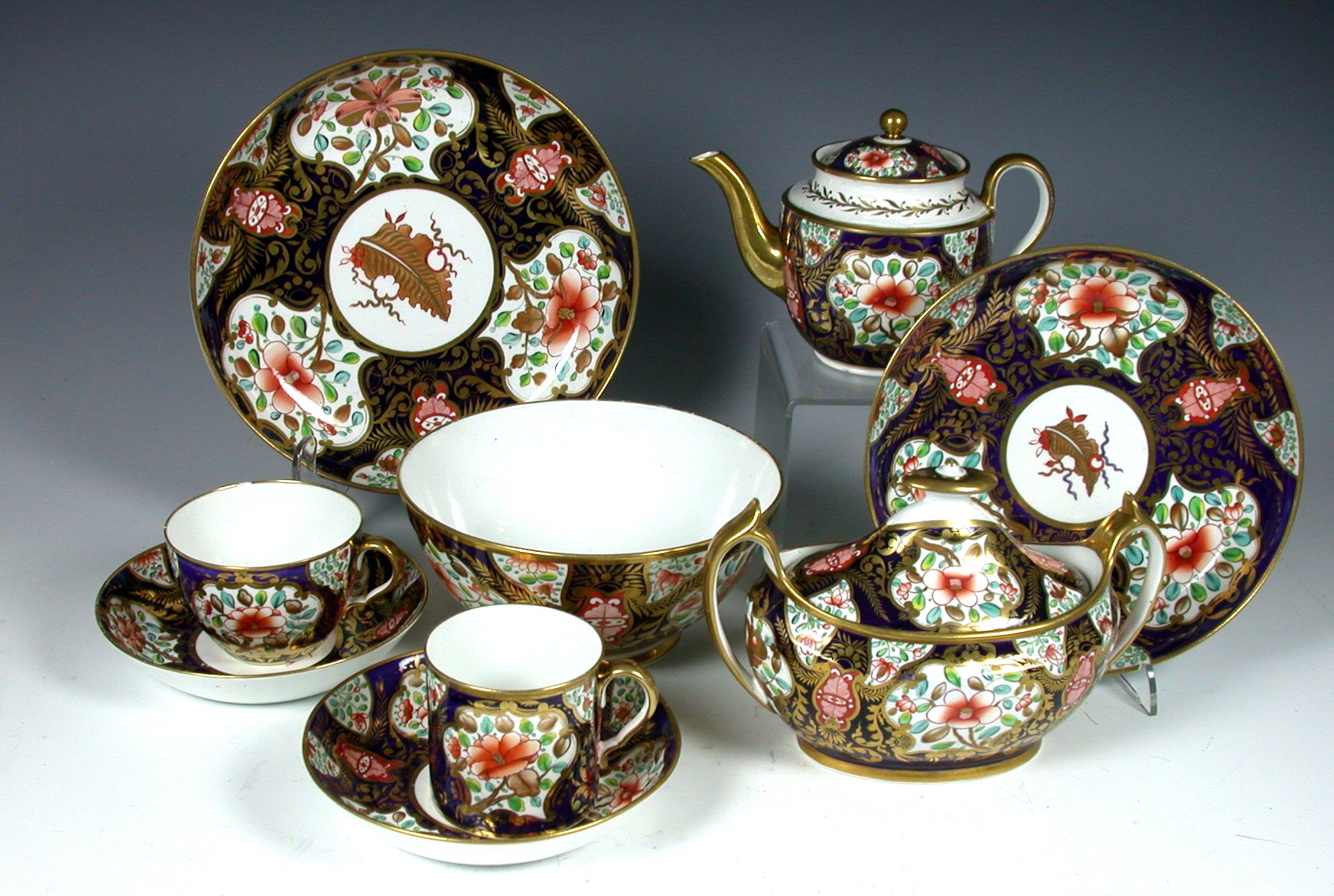 An early 19th century Spode Imari palette part tea and coffee service,