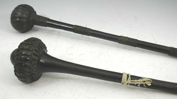 A South Sea island polished hardwood war club made from the crown of a palm tree,