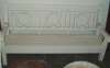 An Edwardian overpainted garden bench, designed in the manner of George Walton,