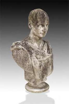 A marble bust of a gentleman in classical drapery, on a socle plinth