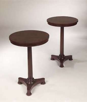 each with circular top above a plain beaded frieze on facetted column with concave tripod base raised on husk feet
