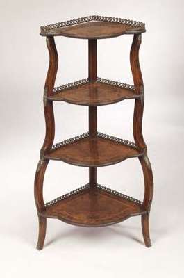A Victorian four-tier walnut and gilt-metal mounted corner etagere,